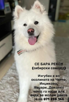 Изгубен е Рекс во околината на Инџиково, Ченто, Маџари, Хиподром.На него има темно син околувратник и каивче против крлежи.